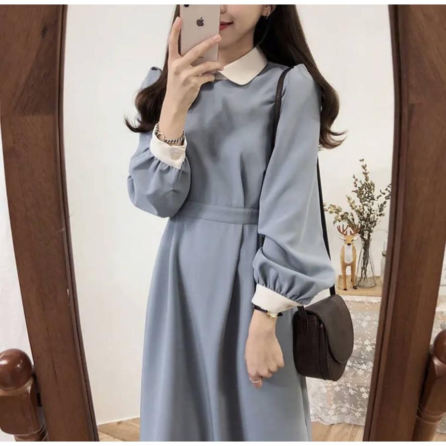 送料無料 大人可愛い レトロコーデ バイカラー 襟付き ガーリー ロング ワンピース Lamitte Deco トレンド 韓国ファッション ショップ